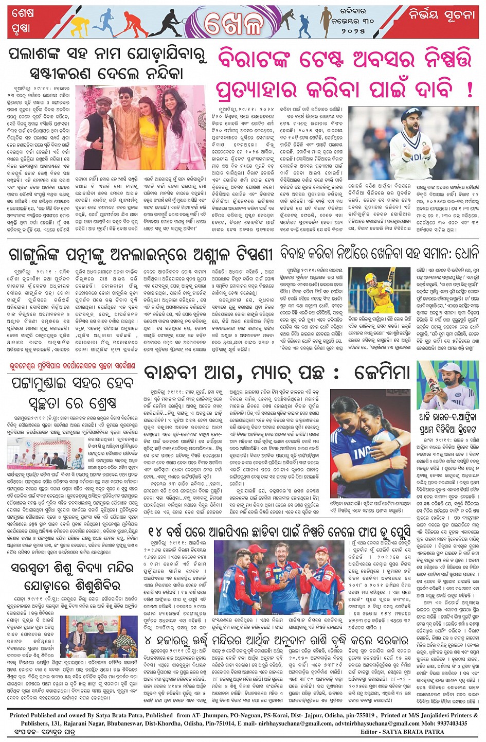Nirbhay Suchana Odia Daily Newspaper Page: 8 << First << 8 >> Last >> Page 1Page 2Page 3Page 4Page 5Page 6Page 7Page 8 × Nirbhay Suchana Odia Daily Newspaper Page-1Page-2Page-3Page-4Page-5Page-6Page-7Page-8 << First << 8 >> Last >> Page-1Page-2Page-3Page-4Page-5Page-6Page-7Page-8 Page-8