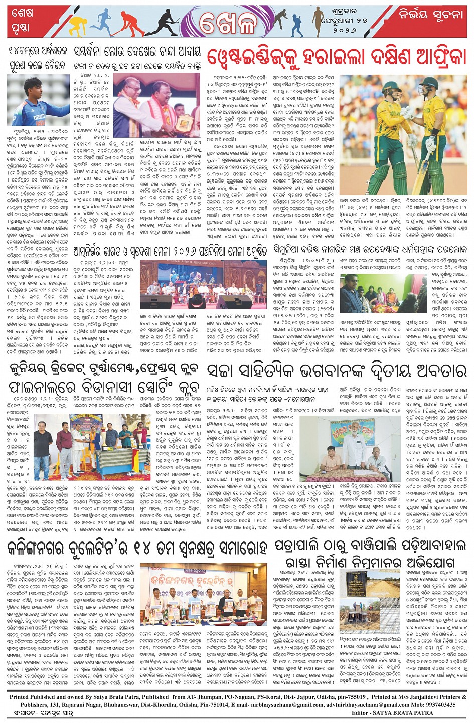 Nirbhay Suchana Odia Daily Newspaper Page: 8 << First << 8 >> Last >> Page 1Page 2Page 3Page 4Page 5Page 6Page 7Page 8 × Nirbhay Suchana Odia Daily Newspaper Page-1Page-2Page-3Page-4Page-5Page-6Page-7Page-8 << First << 8 >> Last >> Page-1Page-2Page-3Page-4Page-5Page-6Page-7Page-8 Page-8